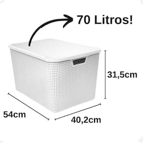 Caixa Organizadora Rattan 70L na cor Branca, perfeita para manter seus ambientes sempre arrumados e charmosos. Com capacidade de 70 litros, peso de 1,646 Kg e medidas de 54cm de comprimento, 31,5cm de altura e 40,2cm de largura, ela é ideal para guardar roupas, brinquedos, documentos e muito mais. Marca: Não Informado