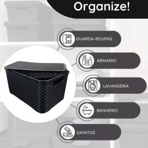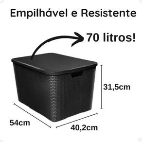 Caixa organizadora rattan 70l na cor preta, perfeita para manter seus ambientes sempre arrumados e charmosos. Com capacidade de 70 litros, peso de 1,646 kg e medidas de 54cm de comprimento, 31,5cm de altura e 40,2cm de largura, ela é ideal para guardar roupas, brinquedos, documentos e muito mais.