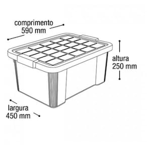 Marca: arqplastx005fx000d 590x450x250mm Código: 25888 Composição/material: plástico Conteúdo da embalagem: 1caixa organizadora Pode ser levado ao microondas: não Pode ser lavado em máquina: não Capacidade: 40 litros