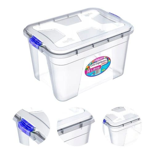 Caixa Organizadora Multiuso Transparente 56 Litros A caixa organizadora vai ser sua aliada no momento de trazer praticidade e organização seja em sua casa, , escritório, entre outros ambientes. Ideal para te ajudar a manter ainda mais organizado o , um item prático e versátil que permite que você armazene: brinquedos, alimentos embalados, documentos, acessórios de casa e os mais diversos itens. Desenvolvida em material resistente e leve, permitindo que você a para onde desejar. Muito espaço, com a capacidade de 56 Litros, além das travas de que impedem de abrir facilmente.