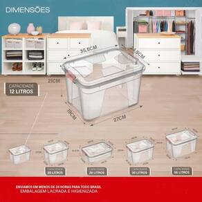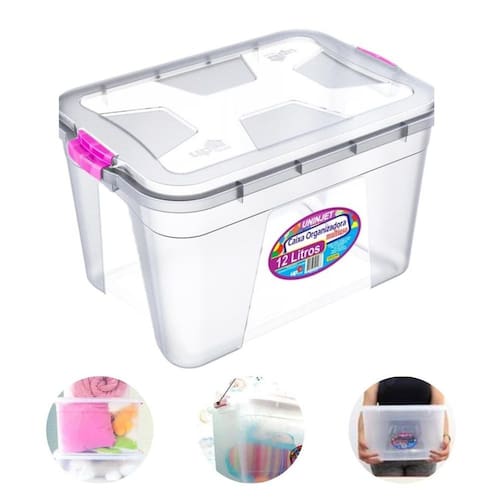 -mantenha a praticidade e organização em diversos ambientes. -ideal para armazenar uma variedade de itens. -material resistente e leve, fácil de transportar. -capacidade de 12 litros para muito espaço de armazenamento. -travas de segurança para proteger seus pertences. -característica transparente para visualização rápida do conteúdo.