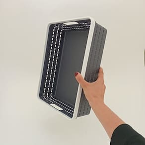 Altura: 10 cm Largura: 33,2 cm Profundidade: 25,5 cm Espessura: 1,1 cm Peso: 0,30 Kg Material: Plástico Cor: Preto