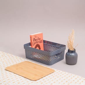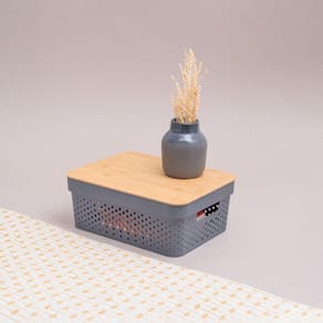 Essa é a caixa organizadora poá com tampa de bambu 10L da OIKOS.Design moderno e natural: com corpo de plástico vazado e tampa de bambu, além de organizar, essa caixa também ajuda a decorar ambientes. fica uma graça ;)Multiuso: dá para organizar roupas, acessórios, produtos de higiene, toalhas, brinquedos, sapatos, material de trabalho, produtos de limpeza e muito mais.Versátil: vai bem em qualquer ambiente da casa: quarto, sala, banheiro, escritório. você que manda!Fácil de carregar: pegou pelas alças, levou!Higiênica e bem fácil de limpar: pano úmido e nada mais.Empilhável: além de ser charmosa, a tampa de bambu permite empilhar uma caixa na outra, e assim, aproveitar bem todo o espaço!Dimensões do produto:Altura: 26,5cmLargura: 14cmComprimento: 35,5cm