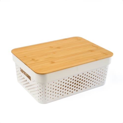 Caixa Organizadora Poá com Tampa de Bambu Oikos Multiuso Branca