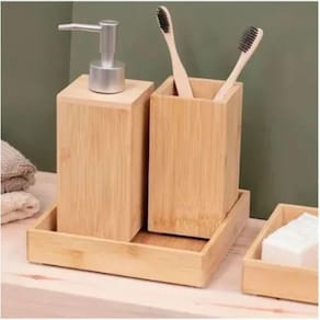 Cor: amadeirado Dimensões: 9cm x 9 cm x 14 cm Composição: bambu Contém 1 peça