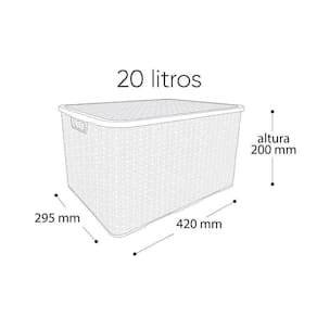 A Caixa Organizadora Rattan 20 Litros produzida em plástico de alta durabilidade e com tampa, irá facilitar a organização de guarda roupas e armários, ou ambientes diversos na sua casa e trabalho. Por ser uma peça charmosa, expor em ambientes abertos dá um toque especial a decoração. Combina com vários ambientes, como cozinha, sala, banheiro e quarto.