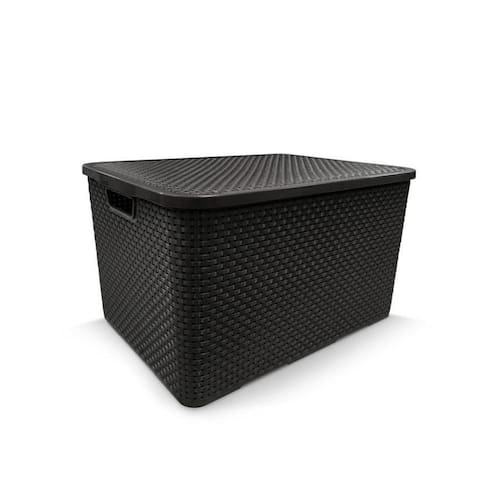 Caixa Organizadora Rattan Com Tampa 40 Litros Preta Arqplast