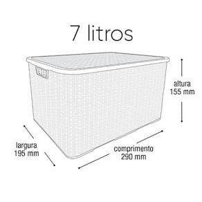 Especificação: A Caixa Organizadora produzida em plástico de alta durabilidade e com tampa, irá facilitar a organização de guarda roupas e armários, ou ambientes diversos na sua casa e trabalho. Nesse Rattan de 7 litros cabem pequenos objetos como: documentos, fotos, relógios, pulseiras, maquiagens, bijuterias, perfumes, roupas íntimas, meias, etc.