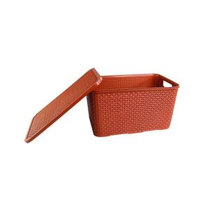 Caixa Organizadora Rattan Terracota Cesto com Tampa 15 Lts