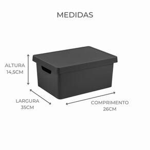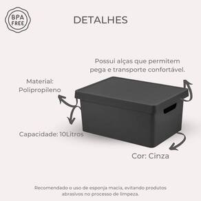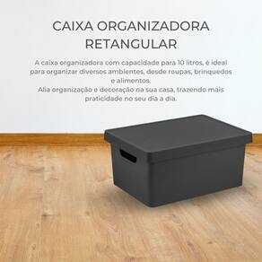 A caixa organizadora com capacidade para 10 litros, é ideal para organizar diversos ambientes, desde roupas, brinquedos e alimentos. Alia organização e decoração na sua casa, trazendo mais praticidade no seu dia a dia. Possui alças que permitem pega e transporte confortável, além de possibilitar a ventilação dos itens armazenados. É também empilhável.