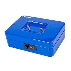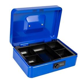 Disponível na cor AZUL com medida única ¿ Medida da caixa para dinheiro 90x250x180mm. Possui alça de transporte embutida, fechadura de combinação, bandeja de dinheiro removível.