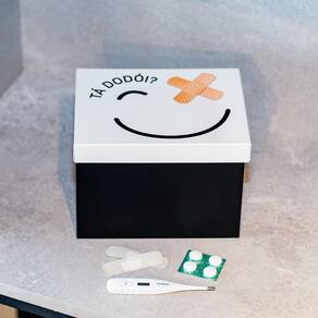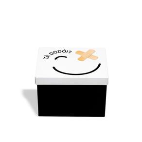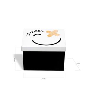 Perfeita para armazenar e organizar de maneira criativa os curativos e medicamentos de forma prática, facilitando na hora que precisar. Tá dodói Para guardar remédios e kit de primeiros socorros divertindo o ambiente. Deixe remédios e kit de primeiros socorros sempre à mão, para aqueles imprevistos. Tampa com dobradiça. Produto de aço fabricado no Brasil. Todo dia é dia de se divertir Em qualquer hora e em qualquer lugar Então, por que não decorar os nossos ambientes com produtos que além de funcionais e práticos sejam divertidos Sugestão de presente para médicos, enfermeiros, profissionais da área da saúde. Os remédios não acompanham o produto.