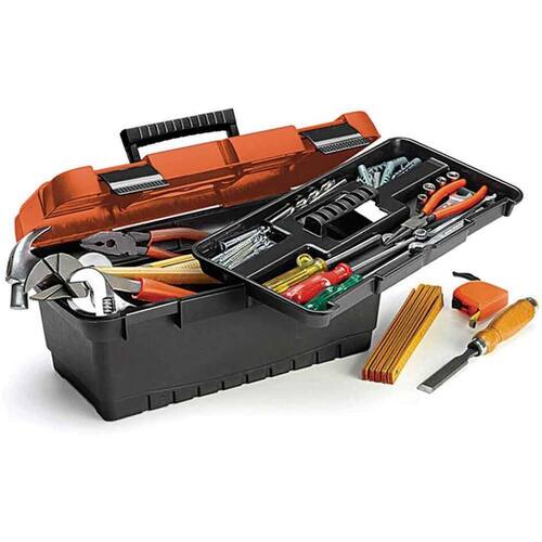 Caixa para Ferramentas em Plástico Preto com Tampa Laranja 40,3x22,3x18,3cm - Nitron