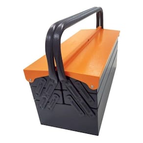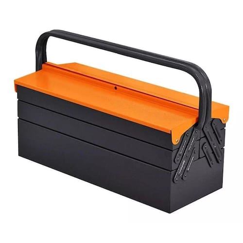 A Caixa de ferramentas sanfonada totalmente confeccionada em aço, é perfeita para transportar suas ferramentas e mantê-las sempre organizadas. CARACTERÍSTICAS- Resistente: Produzida em aço;- Durável: Tratamento antiferrugem, pintura eletrostática a pó;- Excelente custo-benefício;- Segurança: Furação na tampa para cadeado;- Abertura total das gavetas; DADOS TÉCNICOS:: Cor: Laranja e cinza:: Espessura da chapa da coluna: 0,46mm:: Gavetas: 05:: Acabamento: Antiferruginoso:: Peso (kg): 25kg:: Dimensões (C x L x A) (cm): 50 x 20 x 21