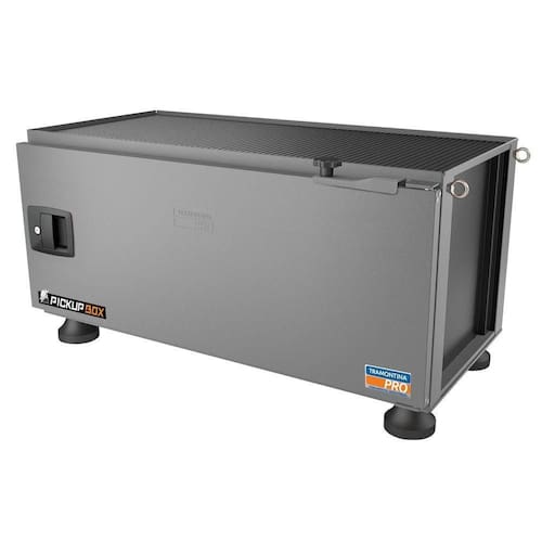 Projetada para facilitar a manutenção em campo, a caixa Pickup Box da Tramontina PRO encaixa perfeitamente na parte traseira de caminhonetes, o que proporciona mais flexibilidade, agilidade e redução de custos na manutenção de máquinas e equipamentos. O mecânico bota o pé na estrada e com as ferramentas em mãos, evita longos deslocamentos das fazendas até concessionárias ou oficinas de reparação. A caixa possui: 4 olhais para fixação da caixa na camionete, pés com sistema de amortecimento anti vibração (vibra stop), fechadura reforçada com chave, porta frontal com borracha de vedação que impede a entrada de poeira e água e dispositivo de trava da porta para locais com vento. Possui 5 gavetas com trancas individuais. Conta com mais de 1,8 metros quadrados de área para armazenamento de ferramentas, peças e acessórios para manutenção. A caixa pode ser personalizada quanto a cor e principalmente quanto a composição, que pode ser colocada em berços de EVA de 40 mm, deixando tudo no lugar durante o deslocamento.