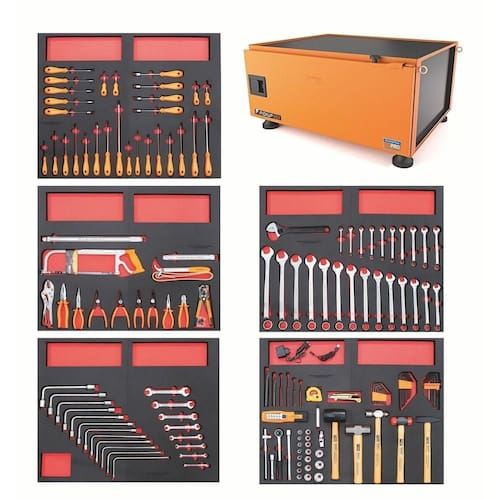 Projetada para facilitar a manutenção em campo, a caixa Pickup Box da Tramontina PRO encaixa perfeitamente na parte traseira de caminhonetes, o que proporciona mais flexibilidade, agilidade e redução de custos na manutenção de máquinas e equipamentos. O mecânico bota o pé na estrada e com as ferramentas em mãos, evita longos deslocamentos das fazendas até concessionárias ou oficinas de reparação. A caixa possui: 4 olhais para fixação da caixa na camionete, pés com sistema de amortecimento anti vibração (vibra stop), fechadura reforçada com chave, porta frontal com borracha de vedação que impede a entrada de poeira e água e dispositivo de trava da porta para locais com vento. Possui 5 gavetas com trancas individuais. Conta com mais de 3 metros quadrados de área para armazenamento de ferramentas, peças e acessórios para manutenção. A caixa pode ser personalizada quanto a cor e principalmente quanto a composição, que pode ser colocada em berços de EVA de 40 mm, deixando tudo no lugar durante o deslocamento.
