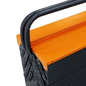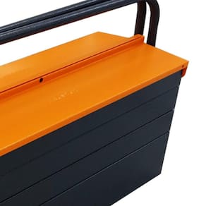 Caixa para Ferramentas Sanfonada com 7 Gavetas 50 cm COR: laranja e cinza Caixa sanfonada para ferramentas 7 gavetas é ideal para organizar e transportar ferramentas, sendo extremamente útil e fácil de locomover, busca atender às mais diversas necessidades de organização. Possui estrutura reforçada com tratamento antiferruginoso, pintura eletrostática a pó, garantindo maior qualidade e durabilidade. Conta com 7 gavetas, sendo 1 grande e 6 pequenas, dobra em todas as gavetas e local para colocar cadeado. - Especificações Técnicas: :: Largura: 200mm :: Altura: 250mm + 110mm alça :: Profundidade: 500mm :: Peso: 5,642 Kg :: Carga Máxima: 30Kg:: Material: Metal