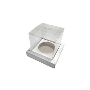 Especificações: Caixa: Transparente Medidas: 10 x 10 x 12 cm Comprimento X Largura X Altura Material da Caixa: Acetato 200 micras 0,20 Material do Berço e da Borda: Papel Duplex 250g Para Panetones de Até 100g Pode suportar tamanhos maiores, verifique medidas Circunferência útil do Berço: 25cm Diâmetro útil do berço: 8cm Altura útil: 12cm
