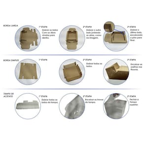 As caixas seguem desmontadas. Dispensa uso de cola. Fácil montagem, apenas com dobras e encaixes.