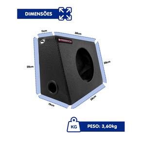 CARACTERÍSTICAS - Ideal para veículos compactos: projetada para um subwoofer de 8" com duto lateral de 2", otimizando espaço sem perder qualidade sonora; - Performance acústica eficiente: configuração dutada que favorece graves mais potentes e definição sonora; - Construção resistente: fabricada em MDF de alta espessura, com revestimento de courvin perfurado preto e manta isolante interna; - Montagem segura e estável: estrutura robusta que reduz vibrações e mantém alinhamento ideal em veículos em movimento.