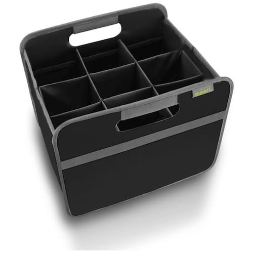 SUPORTA ATÉ 29 kg. Caixa resistente dobrável para transportar vinho ou outras garrafas cabe em champanhe. Alças reforçadas acolchoadas e dois bolsos de malha para guardar acessórios de vinho. A inserção pode ser removida e a caixa dobrável pode ser usada como cubo de zenamento. Adapta se a estantes padrão. Toalhetes limpos facilmente com esponja úmida. inserção pode ser dobrada para carregar menos de 9 garrafas, abrindo espaço para mantimentos ou taças de vinho e acessórios. Este porta vinho de luxo é um presente ideal para os entusiastas do vinho
