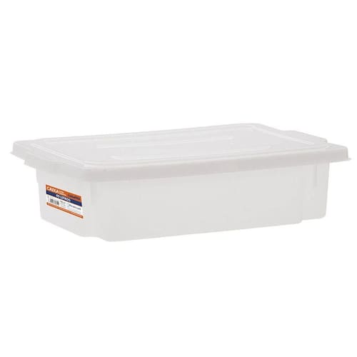 Caixa plástica organizadora com tampa para preparo e acondicionamento de alimentos. São empilháveis, com ou sem a tampa. Podem ser utilizadas no freezer. Produzidas 100% em plástico polipropileno. Atóxicas, com selo BPA free.