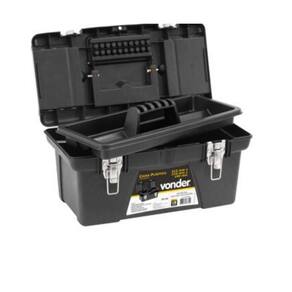 Conteúdo da Embalagem: 1 Caixa plástica Indicada para organizar, armazenar e transportar ferramentas, peças e acessórios em geral Possui duas travas, três compartimentos externos dois removíveis e bandeja para ferramentas removível Comprimento da caixa plástica:415,0 mm Largura da caixa plástica:210,0 mm Altura da caixa plástica:190,0 mm Material da caixa plástica:Polipropileno Cor da caixa plástica:Preta e amarela Capacidade de carga kgf :8 kgf Marca: Não Informado