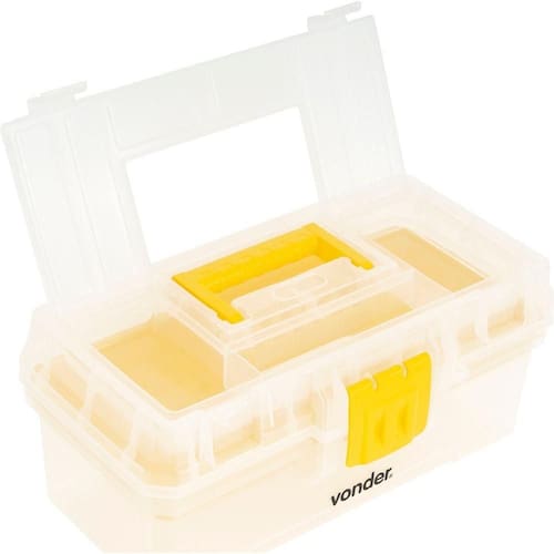 Produto: Caixa | Com rodas: Não | Inclui bandeja extensível: Sim | Material: Plástico | Com alça: Sim | Condição do item: Novo | É kit: Não
