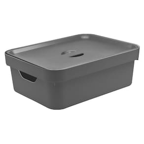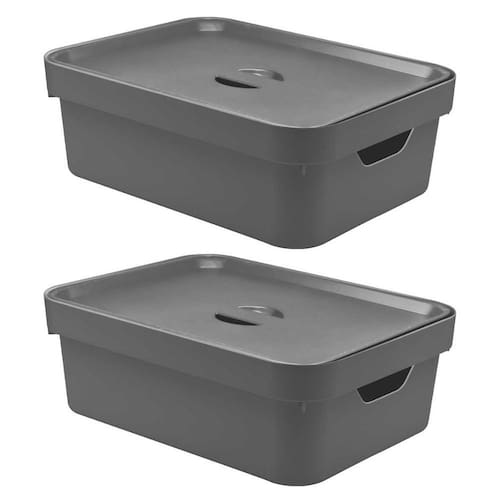 - 02 Caixa Plástica Organizadora Uo Cube Tamanho Médio 10,5 Litros Cinza