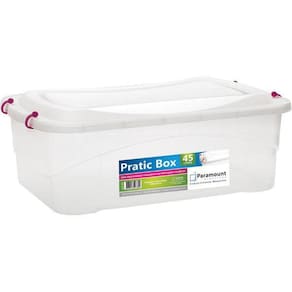 Caixa Plástica Organizadora 45 Litros Com Tampa - Paramount Caixa plástica organizadora com tampa para preparo e acondicionamento de alimentos. São empilháveis, com ou sem a tampa. Podem ser utilizadas no freezer. Produzidas 100% em plástico polipropileno. Atóxicas, com selo BPA free. Cor: Transparente Capacidade: 45 litros Medidas externas aproximadas: comprimento 64cm, largura 41cm e altura 24 cm Fabricante: Paramount Indústria e Comércio de Plásticos