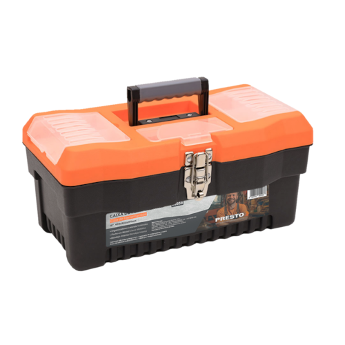 Conteúdo da embalagem: 1 Caixa Plástica para Ferramentas com Bandeja e Organizadores 16" Presto