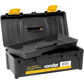 Caixa plástica para ferramentas preta e amarela com 1 bandeja VD 4038 VONDER