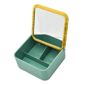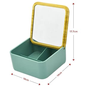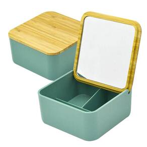 Caixa Porta Objetos Joias Brincos Anéis Com Espelho Bambu COR: VERDE Organização com estilo, essa caixa organizadora tem aplicação multiuso, ideal para guardar objetos pequenos e delicados, possui divisórias e uma tampa de bambu com espelho, seu tamanho compacto é perfeito para locais com pouco espaço.