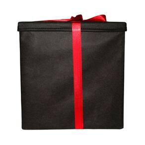 Material do Produto: TNT 80g, estrutura de Cardboard, e poliéster Forrada Interna. Dimensão do Produto: 28cm L ; 30cm A ; 28cm P ; Peso: 592g Cor: Preta e Laço Vermelho