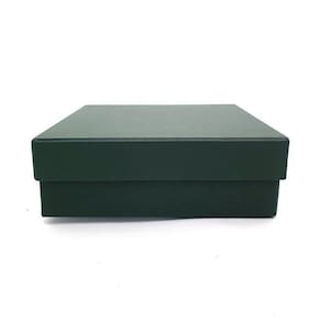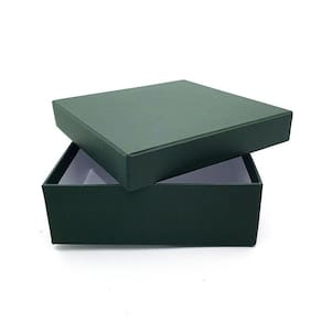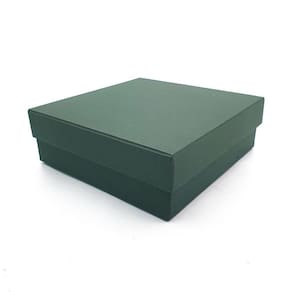 Especificações Técnicas: - Material: Papelão rígido, 2 mm de espessura - Revestimento externo: Papel colorplus - Revestimento interno: Papel couche branco fosco - Tamanho: 20x20x8 cm - Cor: Verde Santiago - Fino acabamento - Produto artesanal, feito à mão - Fabricado e enviado por Craftimbui - Marca própria desde 2001 - Garantia de qualidade