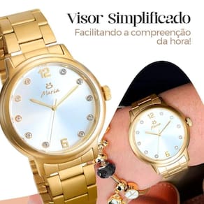 Caixa + Pulseira Pandora + Relógio Feminino Dourado Aço Inox Strass Moda Casual Social Presente Surpreenda a Maria da sua vida com o Conjunto Elegante Orizom Maria: Relógio Feminino Analógico Banhado a Ouro + Pulseira Pandora Banhada Dourada com Pedras de Strass Negras. Este conjunto exclusivo é a combinação perfeita de estilo e sofisticação. O relógio analógico feminino da marca Orizom Maria é banhado a ouro e possui detalhes elegantes em aço inoxidável, garantindo durabilidade e precisão. Além disso, é resistente à água, ideal para no dia a dia.