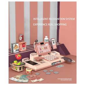 Caixa registradora com som. Inclui todos os acessórios que são vistos nas fotos.25 acessórios\ nTem som\ nPode adicionar. Ele pode falar pelo microfone\ nPossui um leitor de código de rua\ nCaracterísticas Restaura altamente o ambiente de trabalho do caixa do supermercado, permitindo que as crianças experimentem a verdadeira diversão do trabalho no supermercado\ NDesvio de cartão analógico: dois métodos de envio de cartão. Função de microfone, pressione e segure o botão PA, o microfone pode ter a função de alto-falante, a direção do microfone também pode ser controlada por si só, simulando a calculadora integrada do scanner, a tela pode exibir 8 dígitos, você também pode adicionar, subtrair, multiplicar, dividir. Crianças com mais de 3 anos são aconselhadas a jogar