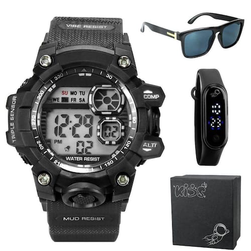 Caixa + relogio infantil digital prova dagua + oculos sol preto data esportivo silicone criança Conjunto estiloso orizom kids para meninos: relógio, óculos e caixa exclusiva