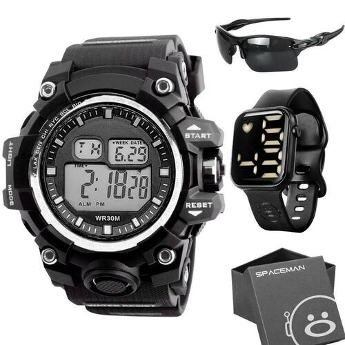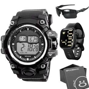 Caixa + Relogio Prova Dagua Digital + Oculos Sol Proteção Uv Alarme Preto Presente Ajustavel Data Kit de Acessórios Estilosos Orizom Spaceman Adicione um toque de modernidade e funcionalidade ao seu visual com este conjunto exclusivo de acessórios Orizom Spaceman. Ideal para presentear a si mesmo ou alguém especial.