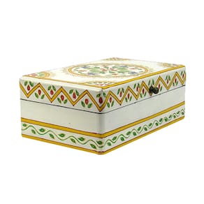 Feita com materiais de alta qualidade, esta caixa rústica é uma expressão do estilo clássico em sua forma mais autêntica. Seu design encantador, com detalhes coloridos, proporciona um toque de aconchego e autenticidade ao ambiente. Além de sua beleza, ela é perfeitamente funcional para a organização.