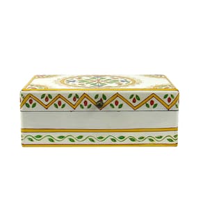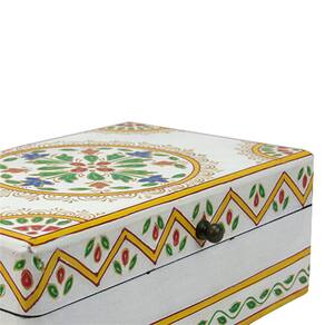 Esta belíssima caixa rústica branca com detalhes coloridos é a escolha ideal para adicionar um toque de elegância clássica à sua decoração. Com dimensões de 9x25x15cm, ela oferece um espaço encantador para armazenar objetos com estilo.