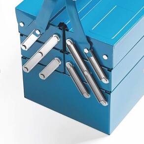 R: Essa caixa possui 5 gavetas espaçosas para armazenar suas ferramentas.