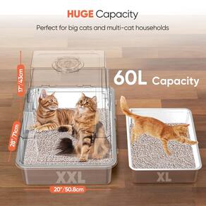 - ?Tamanho grande super 2GG e grande capacidade?O tamanho da caixa de areia de aço inoxidável xxl é 71 cm (comprimento), 20"/50.8 cm (largura), 17"/43 cm (altura), muito maior do que outras caixas de areia de aço inoxidável para gatos. Oferece grande espaço e garante que os gatos se movam confortavelmente. Perfeito para gatos grandes e famílias com vários gatos, mesmo para gatos pesando até 11 kg. A areia xxl As caixas para gatos grandes têm uma enorme capacidade de 60 litros, você não precisa reabastecer as ninhadas com frequência e sem preocupações quando sair para trabalhar ou viajar.