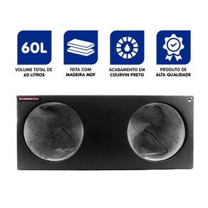 CARACTERÍSTICAS - Capacidade completa: suporte para 2 subwoofers de 12", 1 corneta e 1 tweeter, ideal para sistemas de som automotivo potentes; - Estrutura selada com volume interno de 60 litros, garantindo graves mais controlados e redução de distorções; - Acabamento resistente: confeccionada em MDF de 15–18 mm, revestida com courvin perfurado preto e manta isolante acrílica interna; - Fixação segura: equipada com plugs parafusados com fio e vedação com cola branca e serragem, evitando vibrações indesejadas.