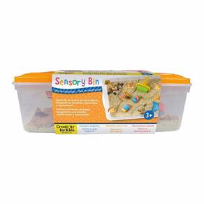 A caixa sensorial com tema de construção é preenchida com materiais cuidadosamente selecionados e testados quanto à segurança, proporcionando às crianças em idade pré-escolar uma oportunidade de descobrir, imaginar, aprender e criar. Enquanto as crianças envolvem ativamente seus sentidos e praticam movimentos motores finos, elas aproveitarão brincadeiras práticas de faz de conta nesta caixa sensorial independente.