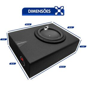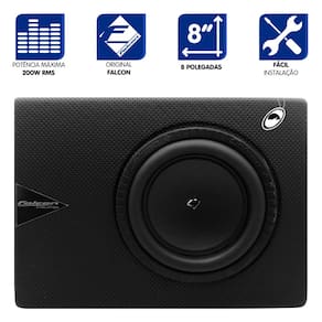- Compacta e funcional: Com design slim e construção em MDF dutado, a Falcon Slim Profile aproveita o espaço interno do veículo sem abrir mão da performance acústica;