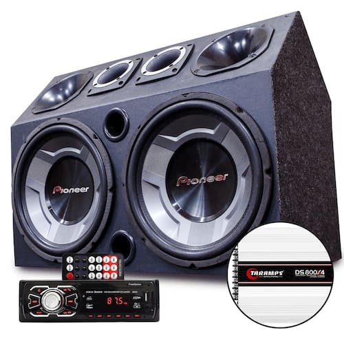 Itens Incluso: 02 - Driver Corneta 100w RMS 02 - Super Tweeter 100w RMS 01 - Caixa de Som Igrejinha 12 02 - Subwoofer 12 Pioneer 3060 350rms * Itens acima já irão montados na caixa sem fiação 01 - Modulo Amplificador Taramps DS 800x4 01 - Radio Bluetooth USB Fm/Am