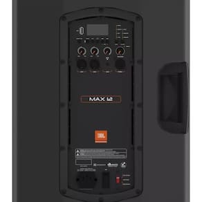 CARACTERÍSTICASModeloJBL MAX 12Potência350 Watts RMSConexões?Bluetooth: Audio streaming, Bluetooth versão 5.0?Conexões 2 Entradas XLR/TRS combo mic/line, 1 Entrada Aux 3,5 mm ,1 Saida XLR pass-thruAuto Falante?Sistema tipo: Duas vias 12 Amplificado?Gabinete: Polipropoleno com tela em aço.Resposta de Frequência65Hz - 16,5KhzSensibilidade128dbDimensões do produto (A x L x C)63,9 x 36,5 x 35,5 cmPeso15,9 KgInformações Adicionais?Impedância de entrada: 100k ohm balanceado?Padrão de cobertura: 110 (horizontal) x 60 (vertical) nominal?DSP: 15 presets?Suporte: 35 mm (duplo ângulo)