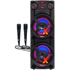Itens inclusos: 1 Caixa de Som, 1 Cabo P2/RCA, 1 Cabo Alimentação, 2 Microfone, 2 Cabo do Microfone, 1 Manual (português)