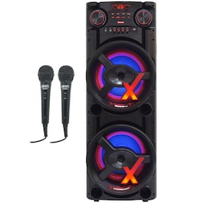 Itens inclusos: 1 Caixa de Som, 1 Cabo P2/RCA, 1 Cabo Alimentação, 2 Microfone, 2 Adaptador P10 (6,5mm) para P2 (3,5mm), 1 Manual (português)